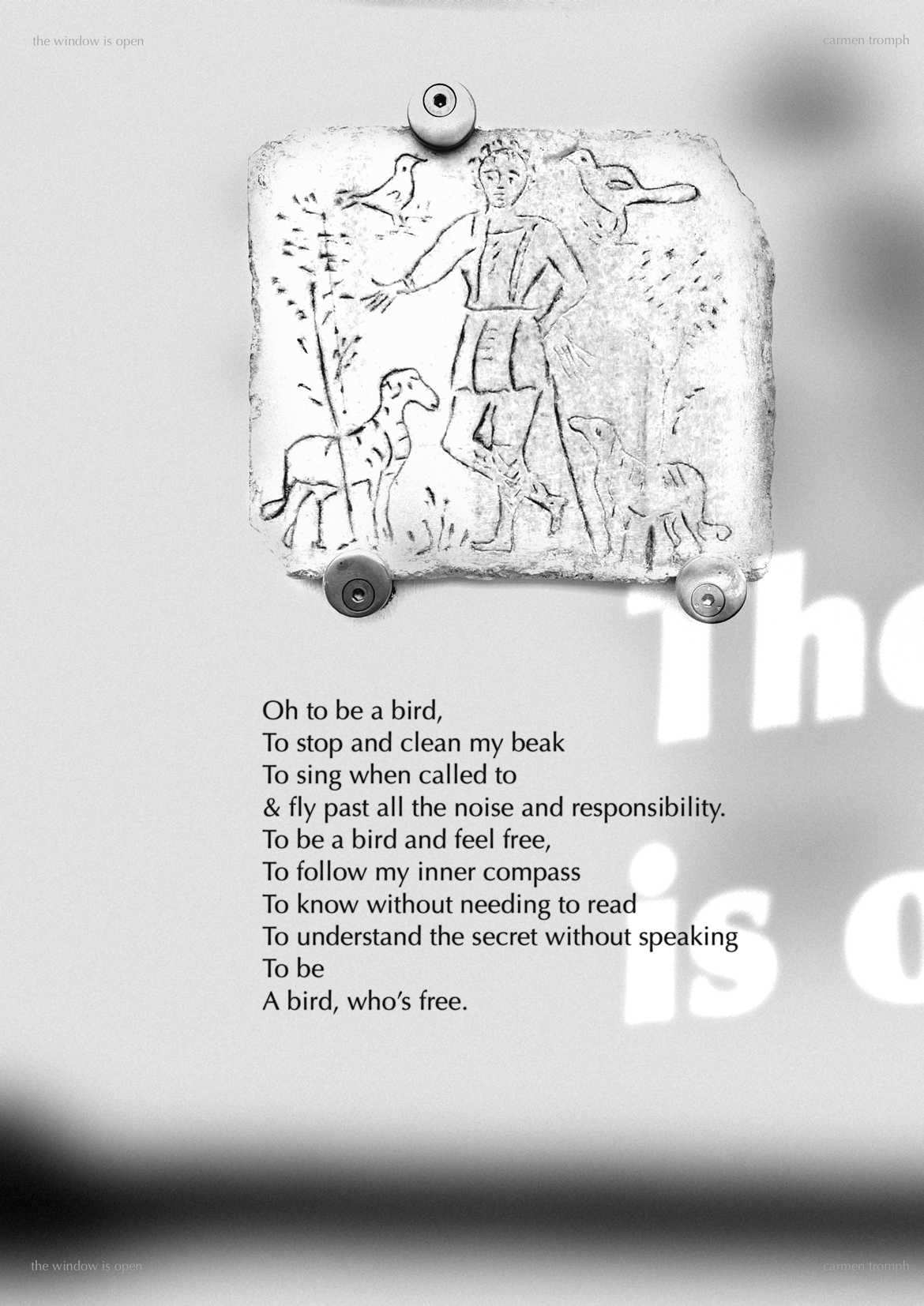 Collected works: Raghava Payment (poetry), Ruta Puzaite (essay, photography), Luca Maresci (essay, painting), Carmen Tromph (poetry), Odessa Cooper (poetry, art, editing)